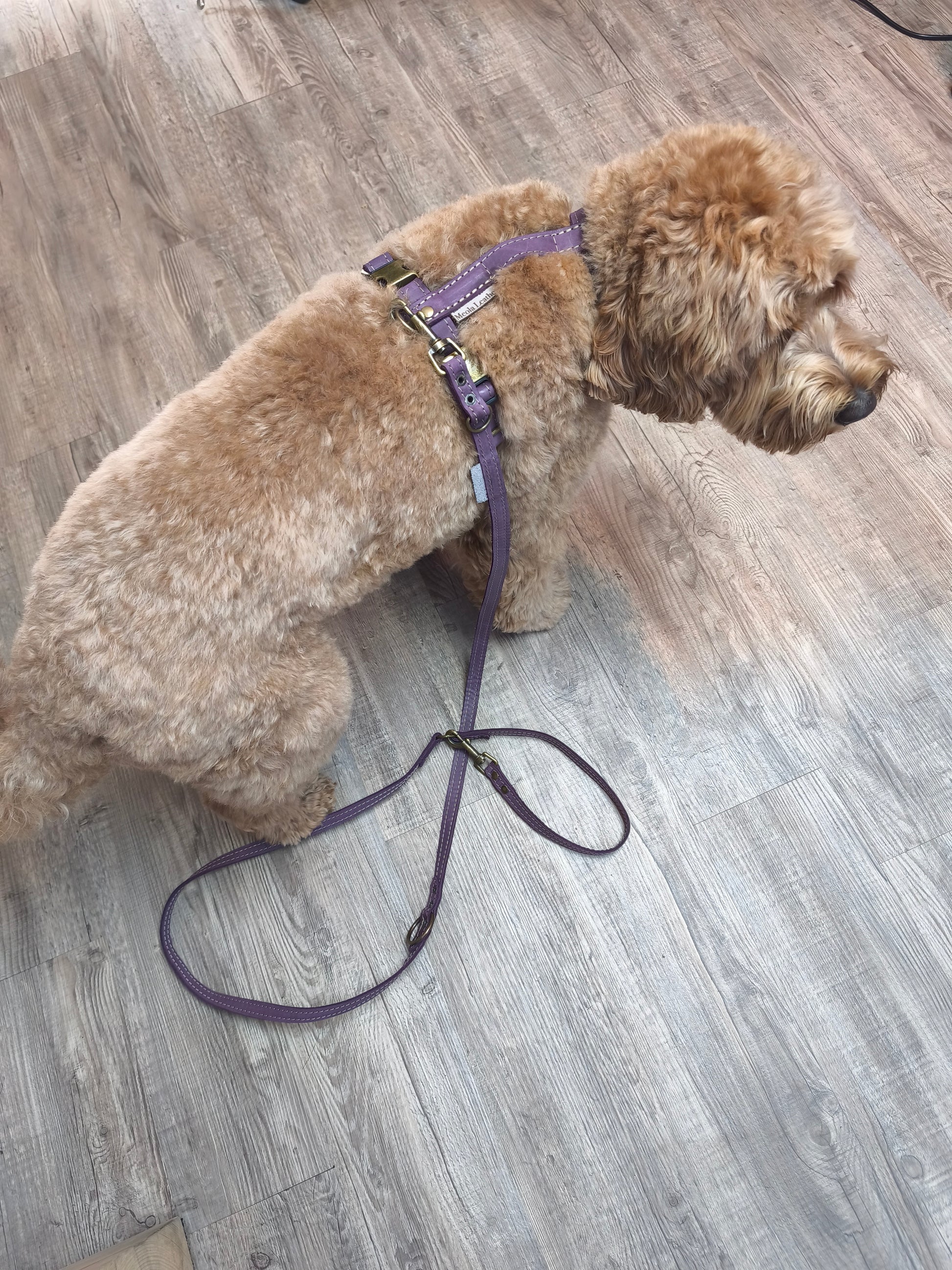 Does your doodle have a coat that tangles easily? Then you know how important a well-fitting harness is. Our leather Y-harness is specially designed to minimize irritation and tangles, while offering your dog optimal comfort and freedom of movement. No more hassle with chafing straps or a knotted coat!