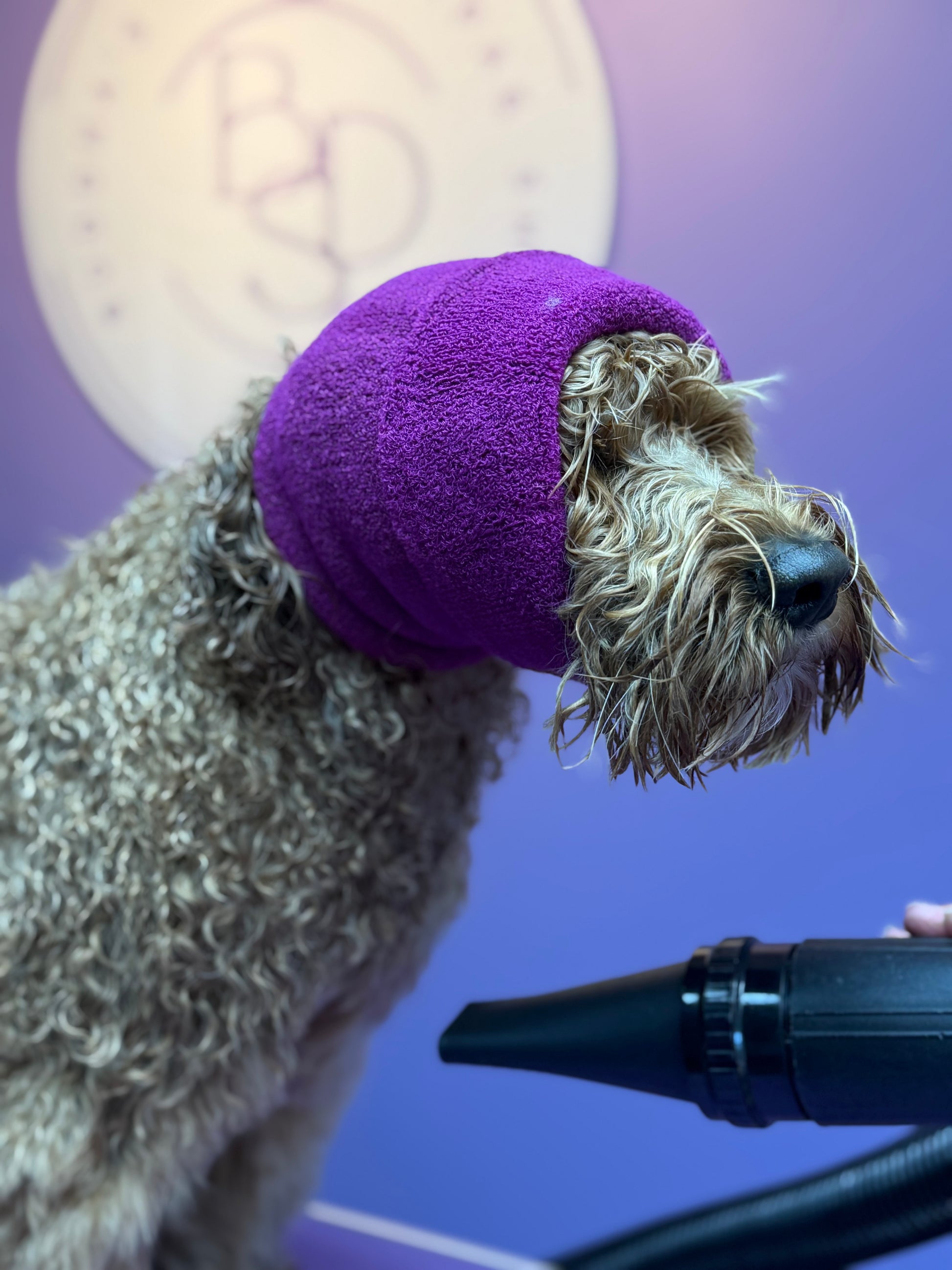 Deze hoodie gebruik je eenvoudig over de oren, voor vochtopnamen en tegen geluid van de blazer maar ook tegen het geluid van het nagels knippen. De doodles worden er vaak iets rustiger van. Geef hem wel de kans om eraan te wennen.