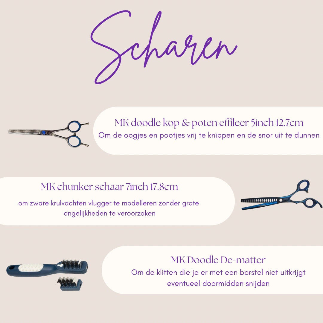 Geef de vacht van je doodle die perfecte, naadloze overgang met de Mikki Enkele Effileerschaar – onmisbaar voor elke thuis trimmende doodle-baasje!
